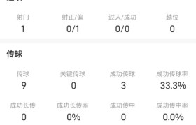 9月12日讯 中超联赛第二十四轮,北京国安0-2河南队,此役,张玉宁替补出场,他全场比赛数据如下:出...